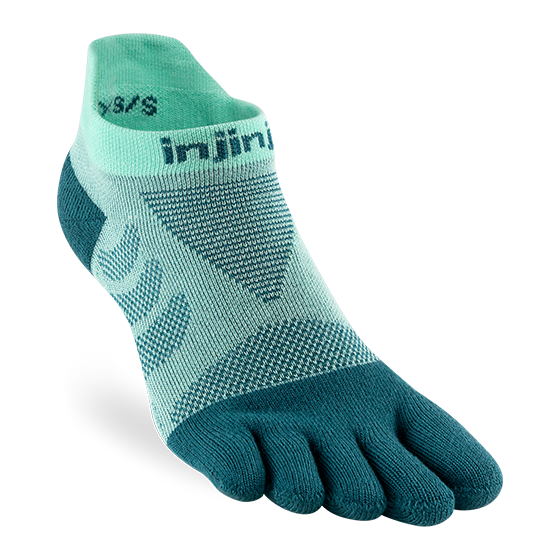 Women's Ultra Run No-Show er designet til at give komfort og støtte, selv efter kilometervis af brug, og har polstret frotté i hele foden og tæerne for at reducere belastningen af hårde løbeture og træningspas på dine fødder. Den slankere profil er designet specifikt til konturerne af en kvindefod – designet med fem tå forhindrer vabler, spreder tæerne naturligt og transporterer fugt væk. No-Show-længden sidder under anklen og har en hælflig for at beskytte mod gnaven.