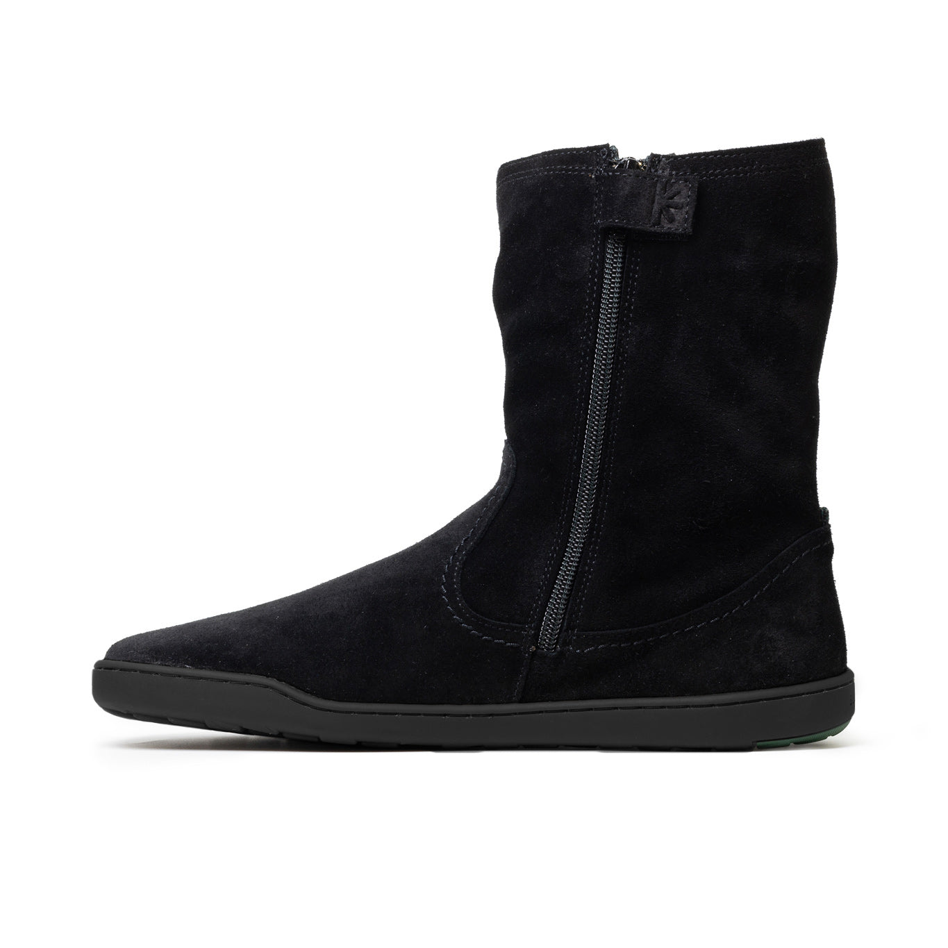 Overdelen er lavet af højkvalitets, hydrofobisk ruskind fra Tyskland. Takket være en særlig garvningsproces er materialet ekstremt vandafvisende, hvilket gør denne barfodsstøvle til en pålidelig ledsager på blæsende og regnfulde dage.